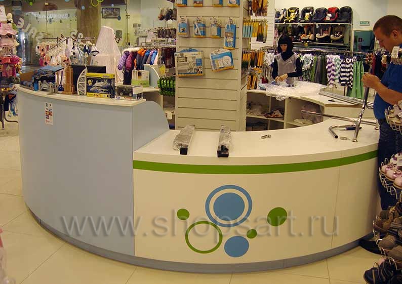 - Безопасность. Это ключевое требование к оснащению любого магазина, который посещают малыши. Используемая в таких заведениях торговая мебель не должна иметь острых углов и элементов, способных травмировать детей.