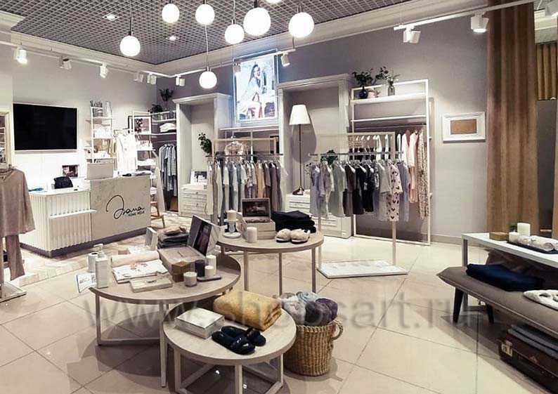 На данной странице представлены фотографии торгового оборудования магазина домашней одежды Дюма коллекция Классический Лофт, на которых вы можете наглядно увидеть преимущества этой мебели.