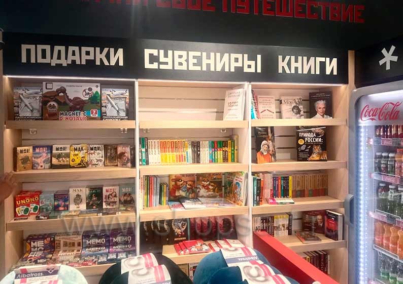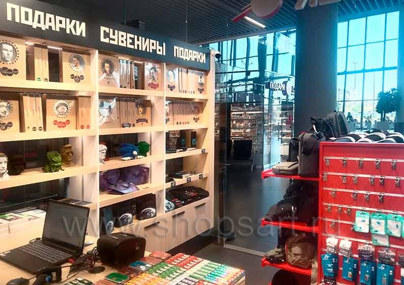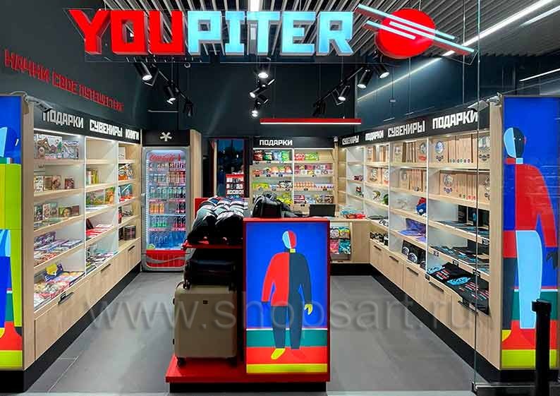 На этой странице Вы можете ознакомиться с фотографиями торгового оборудования в открытом магазине книг и сувениров 1 «YOUPITER», находящегося в городе Саратов, Международный аэропорт Гагарин, на основе коллекции торговой мебели «КНИГОЛЮБ». Произвела и поставила в магазин оборудование для книжного магазина: острова для магазина книг, шкафы для книжного магазина, столы для магазина книг, стеллажи для книжного магазина и другое торговое оборудование для книг компания «Искусство интерьеров». Узнать больше о наших коллекциях мебели для магазинов книг Вы можете на странице мебели для книжного магазина .