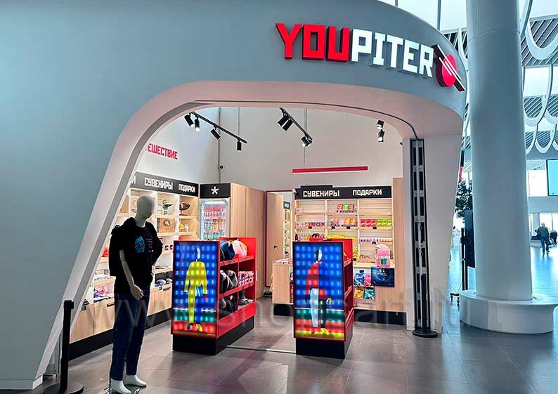 На этой странице Вы можете ознакомиться с фотографиями торгового оборудования в открытом магазине книг и сувениров 2 «YOUPITER», находящегося в городе Саратов, Международный аэропорт Гагарин, на основе коллекции торговой мебели «КНИГОЛЮБ». Произвела и поставила в магазин оборудование для книжного магазина: острова для магазина книг, шкафы для книжного магазина, столы для магазина книг, стеллажи для книжного магазина и другое торговое оборудование для книг компания «Искусство интерьеров». Узнать больше о наших коллекциях мебели для магазинов книг Вы можете на странице мебели для книжного магазина .