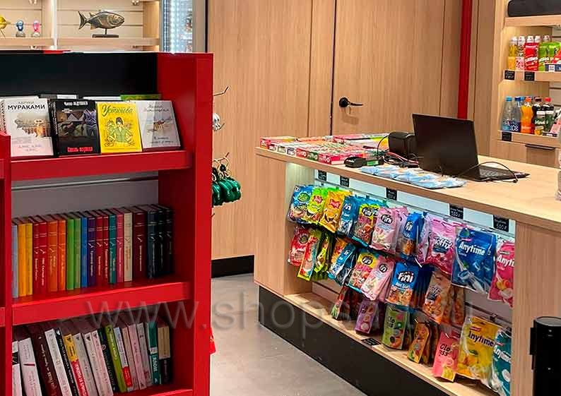 Посмотрите на фотографии, размещенные на данной странице. На них вы увидите коммерческий объект, оснащенный функциональной коллекцией торговой мебели «Книголюб». Она создана специально для размещения печатной продукции. Эта прочная и вместительная мебель станет отличным помощником в развитии бизнеса. Фотографии торгового оборудования магазина книг и сувениров 2 YOUPITER, аэропорт Саратов, коллекция КНИГОЛЮБ показывают удобство и эстетику, которые может внести правильно подобранное оснащение в атмосферу заведения.