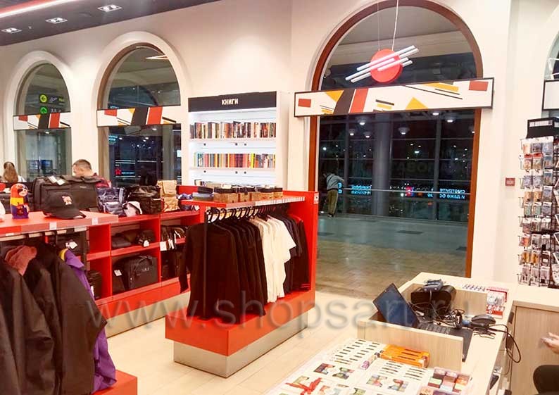 На этой странице Вы можете ознакомиться с фотографиями торгового оборудования в открытом магазине книг и сувениров «YOUPITER», находящегося в Московском аэропорту Домодедово имени М.В. Ломоносова, на основе коллекции торговой мебели «КНИГОЛЮБ». Произвела и поставила в магазин оборудование для книжного магазина: острова для магазина книг, шкафы для книжного магазина, столы для магазина книг, стеллажи для книжного магазина и другое торговое оборудование для книг компания «Искусство интерьеров». Узнать больше о наших коллекциях мебели для магазинов книг Вы можете на странице мебели для книжного магазина .