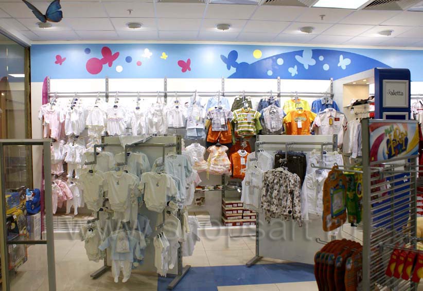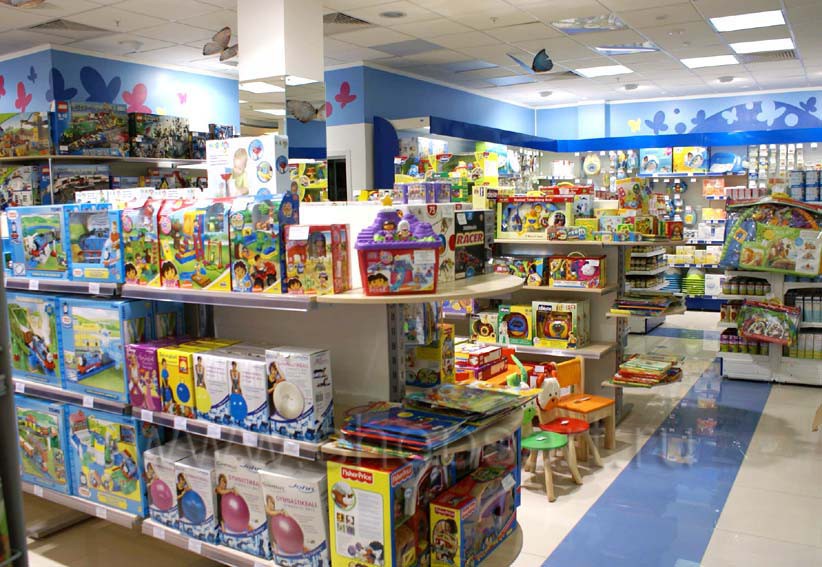 Магазин «Мария» – пример рациональной организации торгового пространства, где представлены различные группы детских товаров. На основе коллекции «Торговые стеллажи» наша компания создала комплект оборудования, в который вошли стеллажи с полками нескольких видов, предназначенные для игрушек, детского питания, одежды. Для зонирования помещения использовались круговые стеллажи для книг, перфорированные стеллажи для размещения коробок с настольными играми, компактные вешала для одежды.