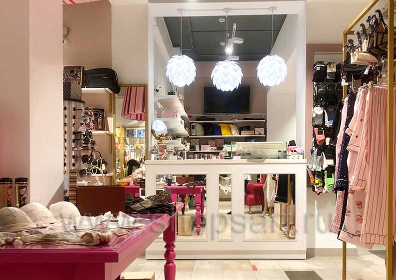 - Прилавки. Они также вам понадобятся для полноценного оснащения магазина белья. На прилавках нередко размещают сопутствующие товары (такие, как подвязки и т.д.).