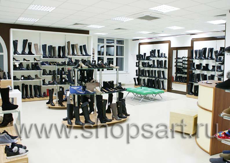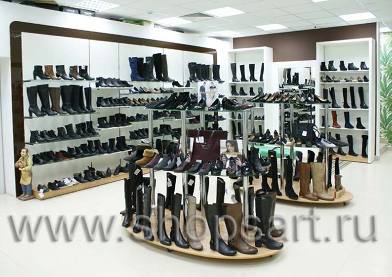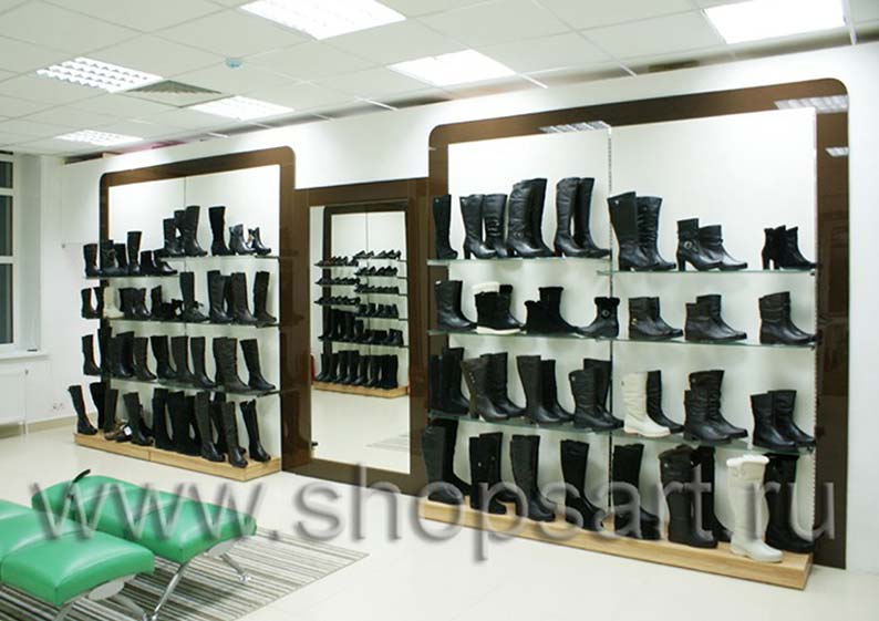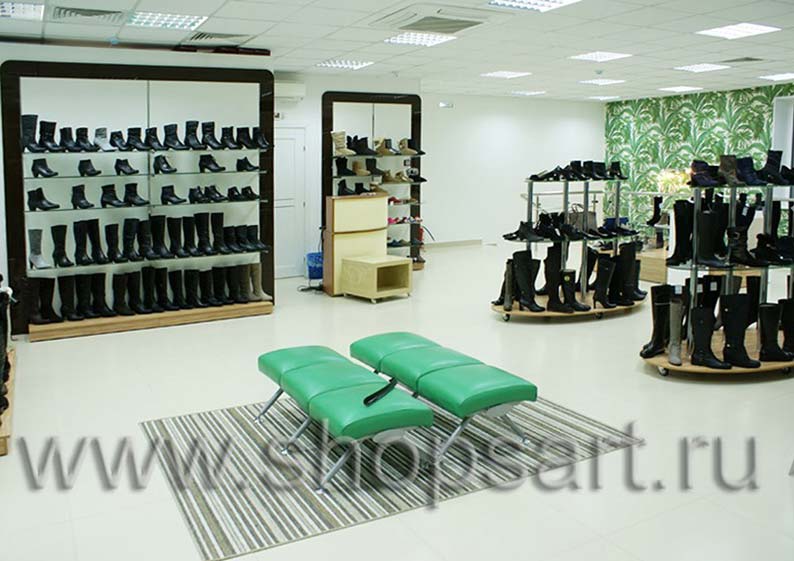 Если говорить, про критерии оборудования для обуви, то оно должно выдерживать вес всей продукции, располагаться с учетом среднего роста покупателя и на уровне его роста. Одной из целей, при создании интерьера для магазина обуви и одежды, мы ставим обеспечение комфорта и удобство покупателя.