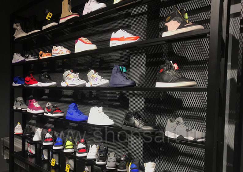 Вы примете удачное для вашего бизнеса решение, если разместите под каждой выставочной моделью обуви, расположенной на стеллажах, накопители. В них можно хранить в коробках все имеющиеся размеры данной модели. Такой стеллаж для магазина обуви, как и любое другое торговое оборудование, вы можете заказать в компании ООО «Искусство интерьеров». Если же площадь помещения не позволяет этого сделать, то будет правильным указать на ценниках выставочного образца наличие размеров данной модели.