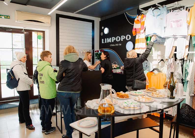 На этой странице Вы можете ознакомиться с фотографиями торгового оборудования в открытом магазине женской и детской одежды «LIMPOPO», находящегося в городе Ефремов, улица Ленина, дом 22, Тульской области, на основе коллекции торговой мебели «ЧЁРНО-БЕЛАЯ КЛАССИКА». Произвела и поставила в магазин оборудование для одежды: вешала для магазина одежды, стеллажи для магазина одежды, стойки для магазина одежды, острова для магазина одежды компания «Искусство интерьеров». Узнать больше о наших коллекциях оборудования для магазинов одежды Вы можете на странице мебели для магазинов одежды.