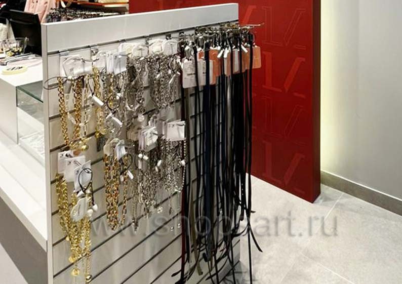 - Торговые системы. Они могут быть как пристенными, так и островными. Данные конструкции оснащены надежной основой для крепления функциональных элементов (таких, как вешала, полкодержатели и т.д.).