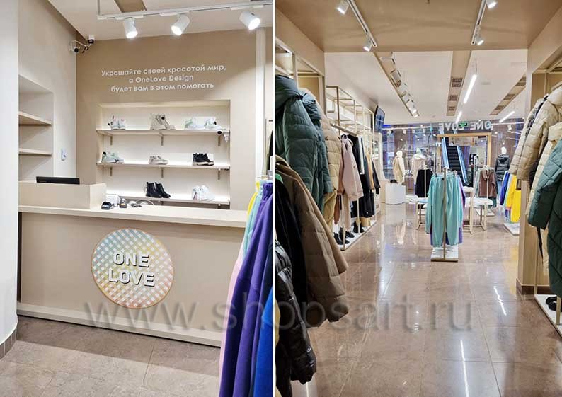 Дизайн интерьера магазина одежды “ONE LOVE”, ТРЦ «РИО», г. Москва на основе коллекции торгового оборудования «КЛАССИЧЕСКИЙ ЛОФТ»