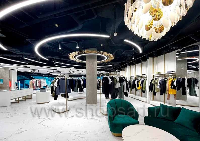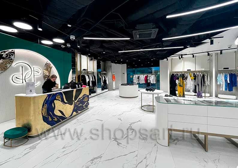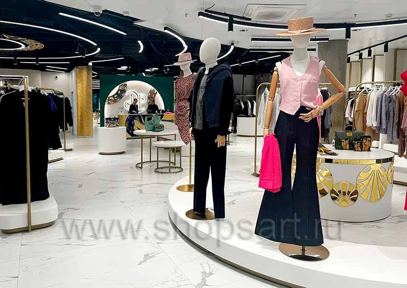 Дизайн интерьера магазинов одежды на основе коллекции торгового оборудования ЗОЛОТАЯ ЛИНИЯ