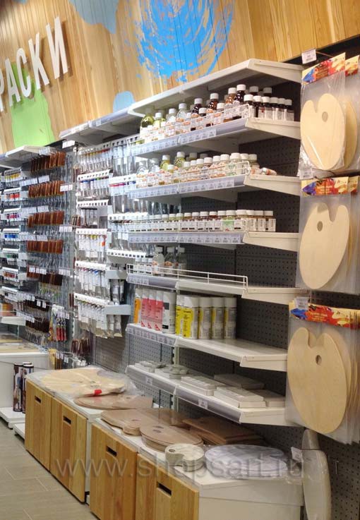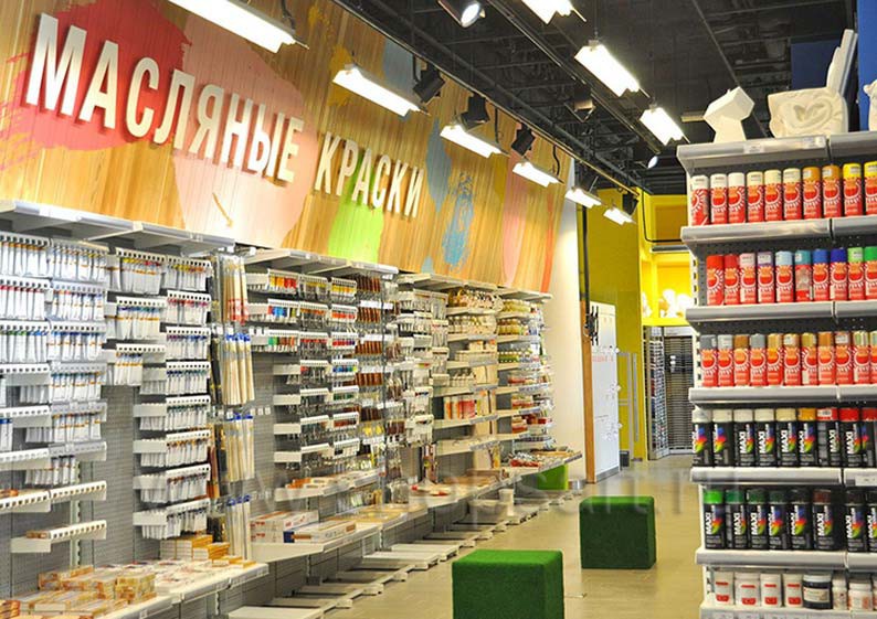 На этой странице Вы можете ознакомиться с фотографиями торгового оборудования в открытом магазине для художников “Передвижник”, находящегося в городе Москве, Центральный детский магазин, Театральный проезд, 5/1, 3-й этаж, на основе коллекции торгового оборудования «ЦВЕТНЫЕ МЕТАЛЛИЧЕСКИЕ СТЕЛЛАЖИ». Разработала и поставила торговую мебель: торговые стеллажи, торговые металлические стеллажи, усиленные стеллажи и другую торговую мебель компания «Искусство интерьеров». Узнать больше о наших коллекциях мебели для магазинов Вы можете на странице торгового оборудования для магазинов и бизнеса.