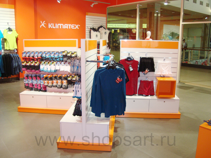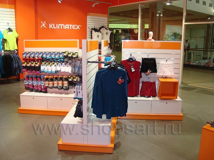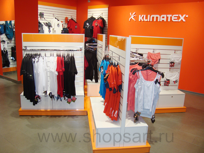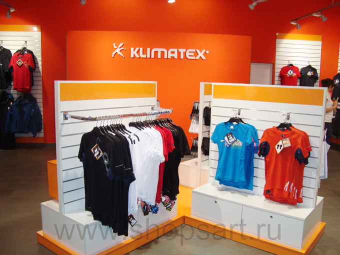 На этой странице Вы можете ознакомиться с фотографиями торгового оборудования в открытом магазине спортивной одежды из Чехии “KLIMATEX”, находящегося в ТРЦ “Спектр”, г. Москва, Новоясеневский проспект, дом 1, на основе коллекции торговой мебели «АТЛАНТ». Поставила в магазин оборудование для одежды: вешала для магазина одежды, стеллажи для магазина одежды, стойки для магазина одежды, шкафы для магазина одежды, острова для магазина одежды компания «Искусство интерьеров». Узнать больше о наших коллекциях мебели для магазинов одежды вы можете на странице оборудование для одежды в Москве .