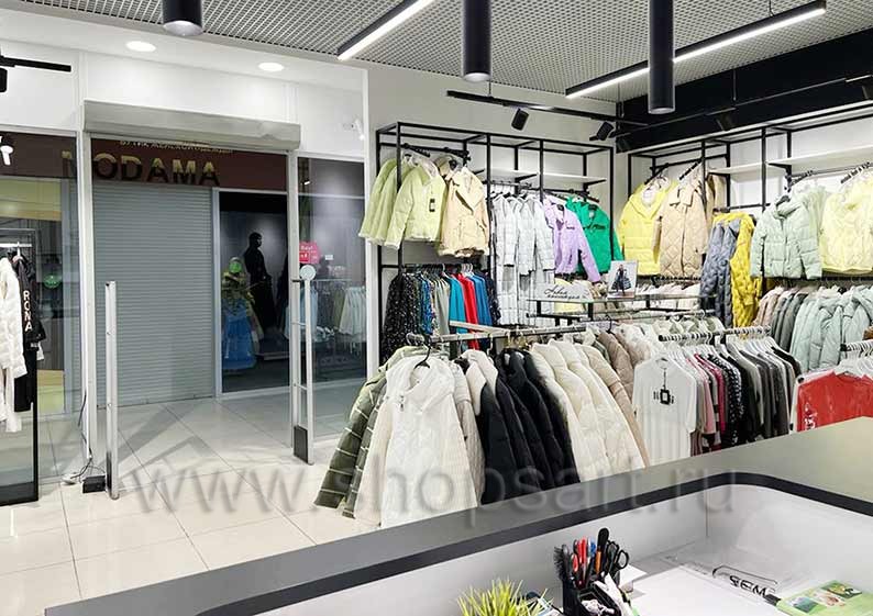 - Удобный доступ к представленной продукции. Поскольку в наши дни магазины одежды практикуют организацию продаж в режиме самообслуживания, конструкции открытого типа просто необходимы.