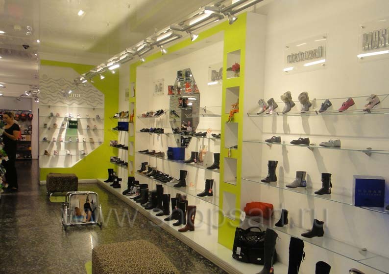 - Полки и вешалки для обуви. Когда территория коммерческого помещения использована рационально, это значительно облегчает организацию торговли. Здесь вам помогут вместительные полки и вешалки для обуви. Данные конструкции не только обеспечивают удобное хранение большого количества обувной продукции, но и могут использоваться для ее демонстрации.