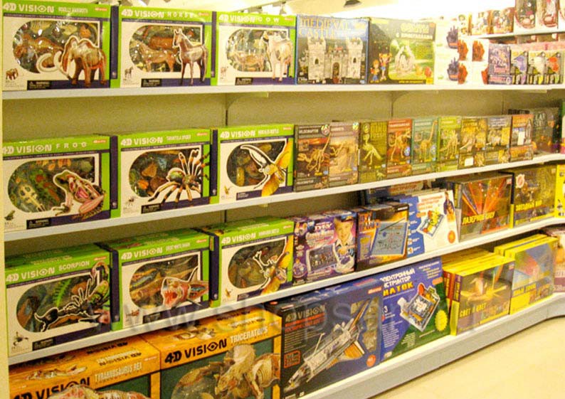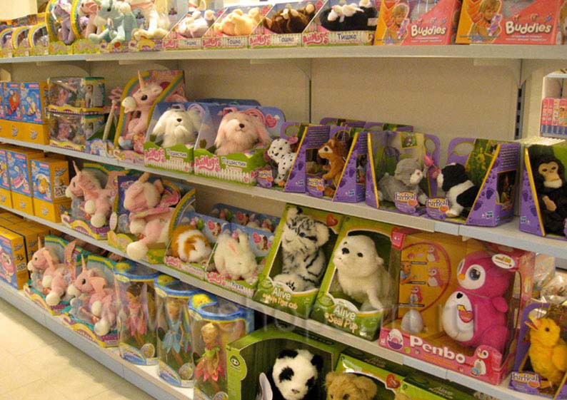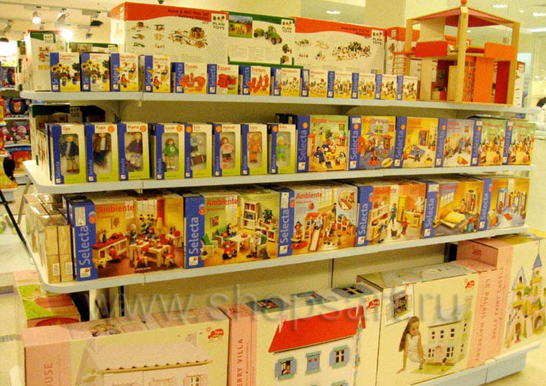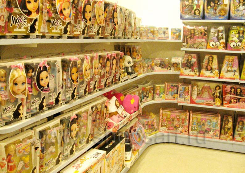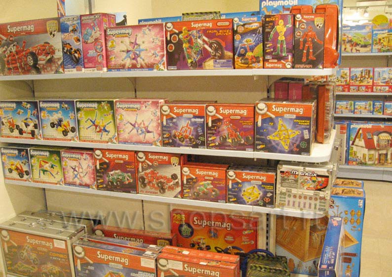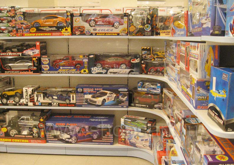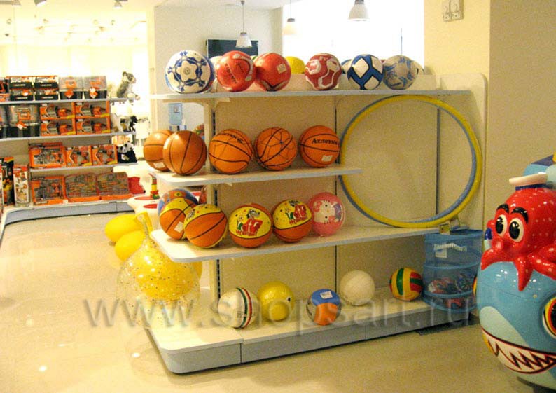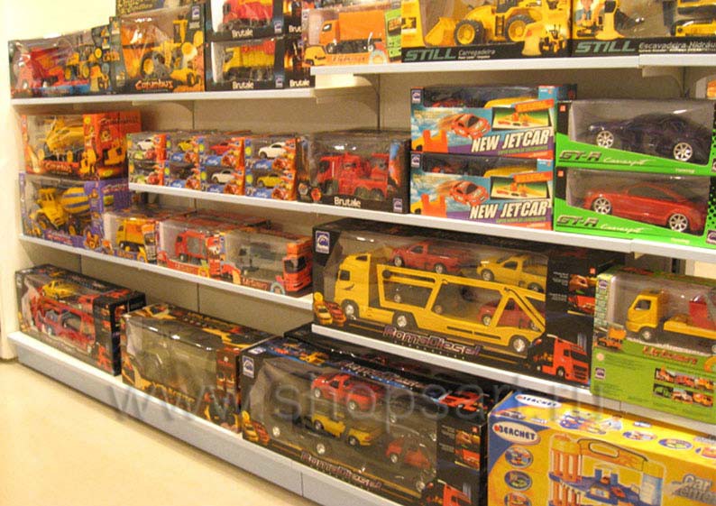 Как известно, игрушки сами по себе являются довольно яркими товарами. Поэтому желательно использовать для их размещения и демонстрации однотонное торговое оборудование.Такой подход позволит акцентировать внимание покупателей на товарах, а не на мебели.