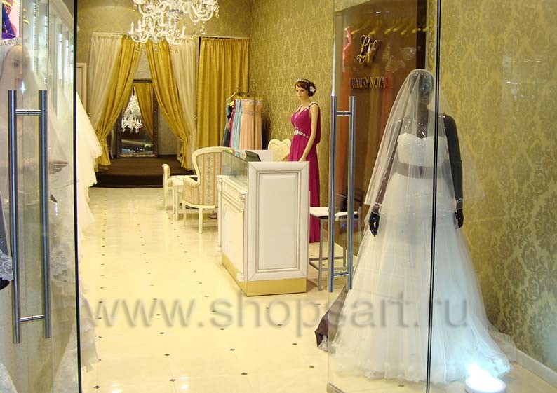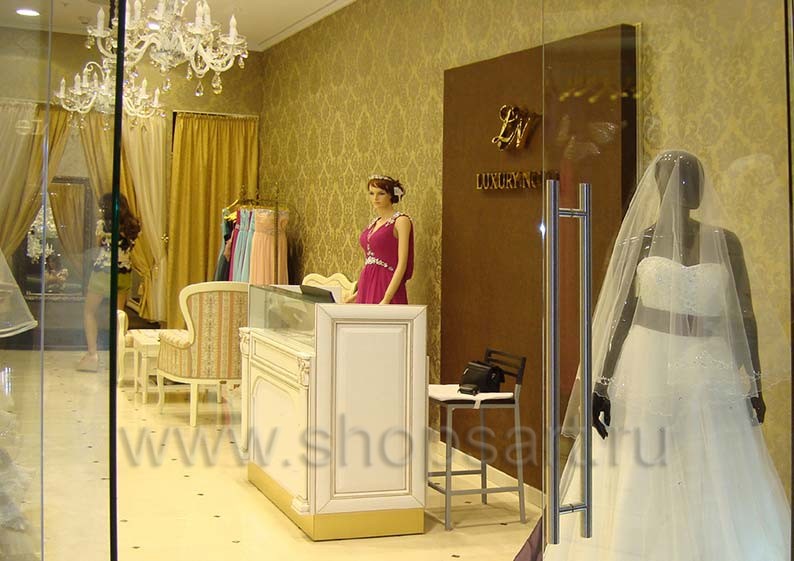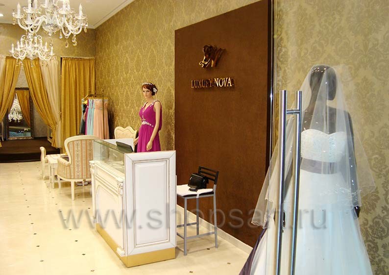 Дизайн интерьера свадебного салона «LUXURY NOVA», ТРЦ «Афимолл Сити», на основе коллекции торгового оборудования «ЭЛИТ ГОЛД»