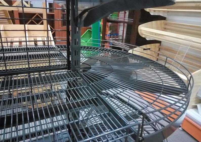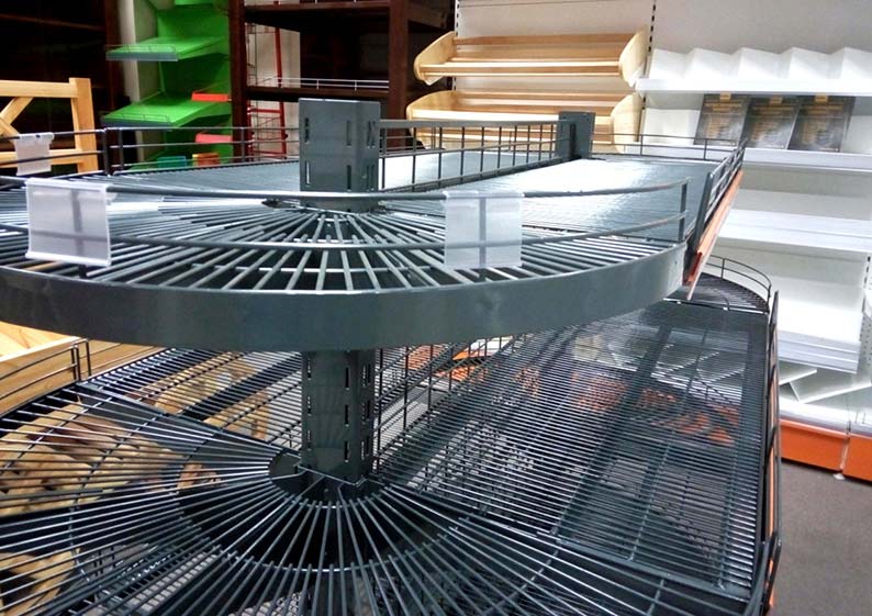 Одна из наших коллекций называется «Сетчатые стеллажи». Конструкции данной серии применяются для размещения продукции повышенного спроса. Как правило, их устанавливают неподалеку от кассовой зоны. Таким образом владельцы магазинов привлекают внимание посетителей к размещенным в них товарам.