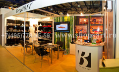 Фотографии торгового оборудования в выставочном стенде компании «BergHOFF», ЦВК «Экспоцентр», г. Москва, коллекция «МЕБЕЛЬ ДЛЯ ПОСУДЫ»