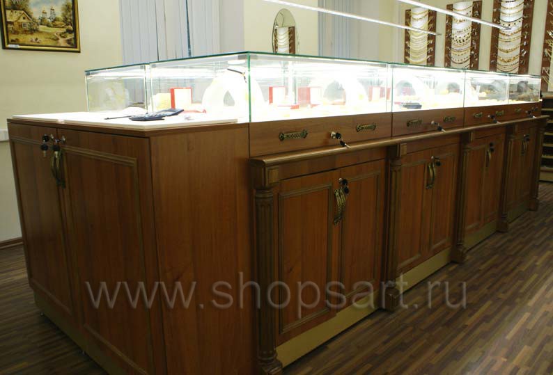 Фотографии торгового оборудования в открытом ювелирном магазине “Октябрь”, г. Москва, Фрунзенская наб., коллекция «КОРИЧНЕВАЯ КЛАССИКА»