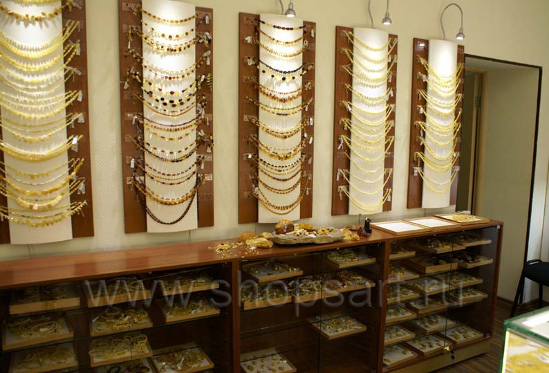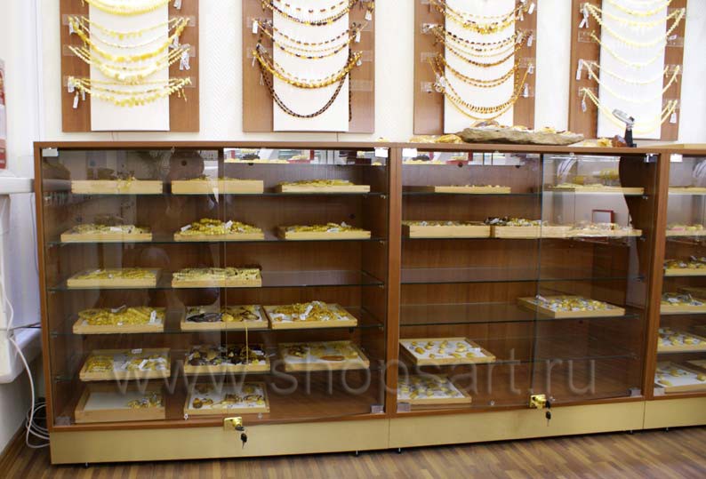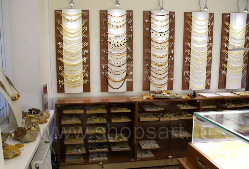 На этой странице Вы можете ознакомиться с фотографиями торгового оборудования в открытом ювелирном магазине янтаря ТД «Амбер», находящемся в городе Москве, улице Зои и Александра Космодемьянских. Ювелирные витрины, ювелирные прилавки и другое оборудование для ювелирного магазина, на основе коллекции «КОРИЧНЕВАЯ КЛАССИКА», поставила компания «Искусство интерьеров». Дизайн торгового оборудования, торговой мебели и оборудование для ювелирных изделий были разработаны для продажи ювелирных изделий из янтаря, российского производства, экскурсионным группам из Китайской Народной Республики. Узнать больше о наших коллекциях мебели для магазинов Вы можете на странице торгового оборудования для ювелирных магазинов.