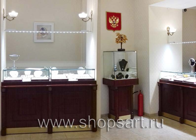 Дизайн интерьера ювелирных магазинов на основе коллекции торгового оборудования КОРИЧНЕВАЯ КЛАССИКА