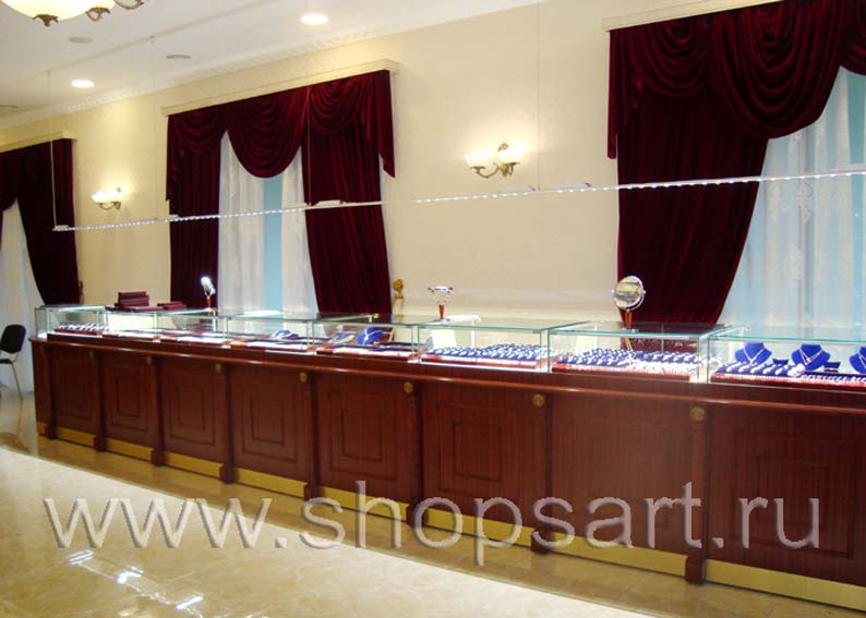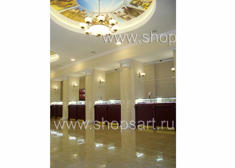 Компания «Искусство интерьеров» разработала торговую мебель для ювелирного салона. Салон создавался для клиентов из Китая, которые приезжают в Москву. За основу была взята коллекция мебели Коричневая классика. Был разработан новый комплект мебели: витрины, демонстрационные кубы, шкафы с секциями-нишами, прилавки.