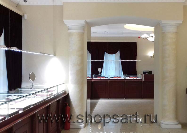 Дизайн интерьера ювелирного магазина, г. Москва, пр. Мира, на основе коллекции торгового оборудования «КОРИЧНЕВАЯ КЛАССИКА»