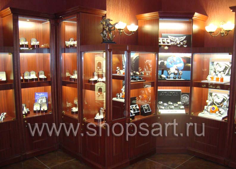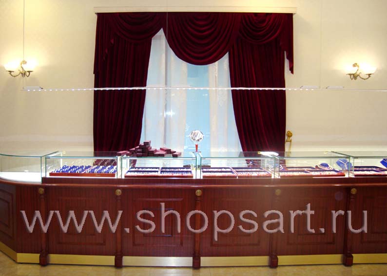 Торговое оборудование «КОРИЧНЕВАЯ КЛАССИКА» поставленное в ювелирный магазин «Октябрь», Фрунзенская наб.