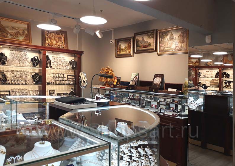 Фотографии торгового оборудования в открытом ювелирном магазине “Октябрь”, г. Москва, Фрунзенская наб., коллекция «КОРИЧНЕВАЯ КЛАССИКА»