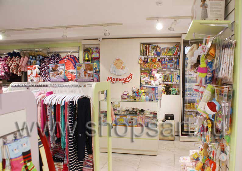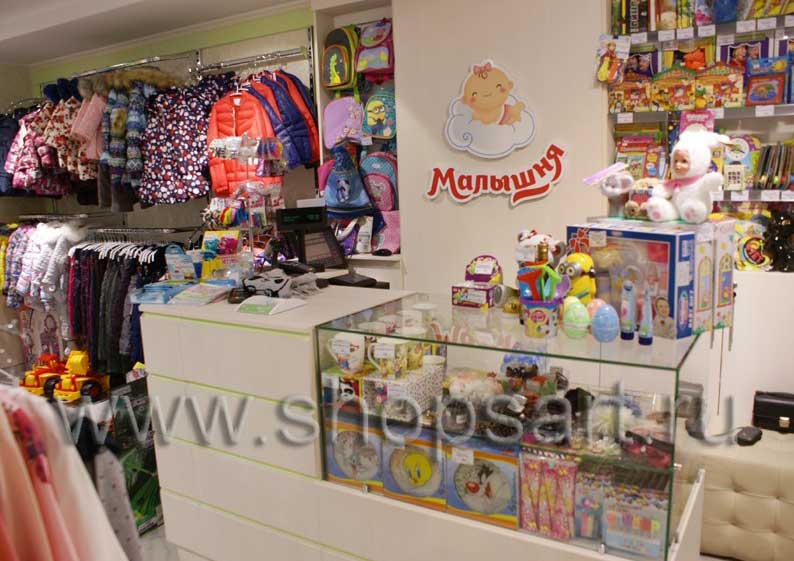 На этой странице Вы можете ознакомиться с фотографиями торгового оборудования в открытом детском магазине «Малышня», находящегося в городе Москве, микрорайон “Царицыно”, 6-я Радиальная улица, дом 3, корпус 9. Торговую мебель для магазина, на основе коллекции «АКВАРЕЛИ», разработала, поставила и установила компания «Искусство интерьеров». Узнать больше о наших коллекциях мебели для детских магазинов Вы можете на странице детской торговой мебели.