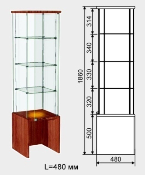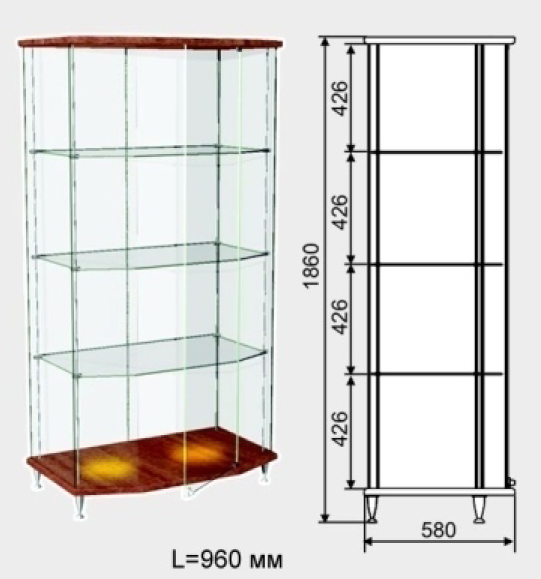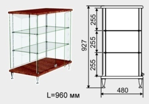- И-007. Витрина демонстрационная Стеклянная распашная дверь с замком Возможен вариант без подсветки
