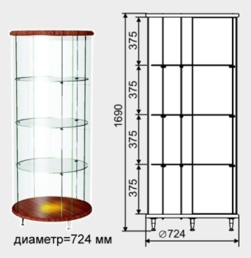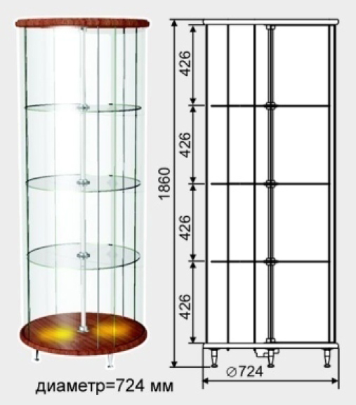 - И-008. Круглая демонстрационная витрина серии «Изумруд» с с вращающимися полками Стеклянная распашная дверь с замком Подсветка.