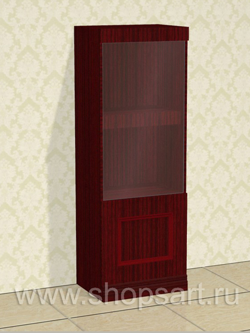 Витрина низкая прямая, изготавливается из ЛДСП. Дверки стеклянные, распашные. Золотая фурнитура (замки и петли). Высота 1600мм., ширина 590мм., глубина 300мм. Ножки регулируемые. Цоколь махагон.