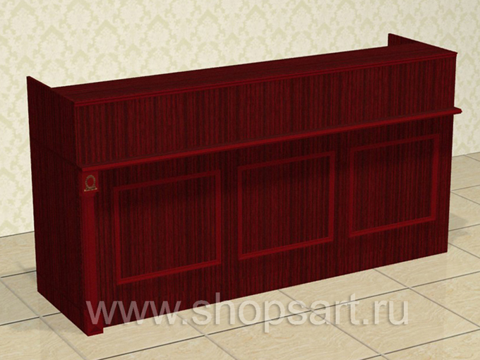 Кассовый стол, изготавливается из ЛДСП, с декоративными элементами из массива дуба. Высота 1200мм., ширина 2200мм., глубина 582мм. Ножки регулируемые. Цоколь ЛДСП.