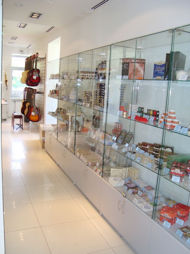 На этой странице Вы можете ознакомиться с фотографиями торгового оборудования в открытом магазине музыкальных инструментов, находящемся в городе Москве. Произвела, поставила и установила в магазине торговую мебель: торговые стеллажи, торговые прилавки, торговые острова, торговые стойки, пристенные стеллажи, торговые шкафы и др. компания ООО «Искусство интерьеров»