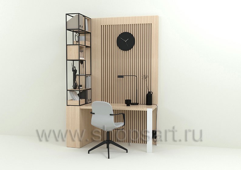 Комплект мебели для персонала «Бриз» подойдет для оформления небольшого кабинета или рабочей зоны в офисе. Данная модель мебели состоит из рабочего стола и открытого стеллажа с полочками для хранения документации. Комплект офисной мебели выполнен из матового ЛДСП в цвете натурального дерева с декоративной отделкой. Каркас стеллажа выполнен из металла с покрытием порошковой краской чёрного, матового цвета. Мебель для офиса на заказ может быть выполнена в другом цвете и размерах.