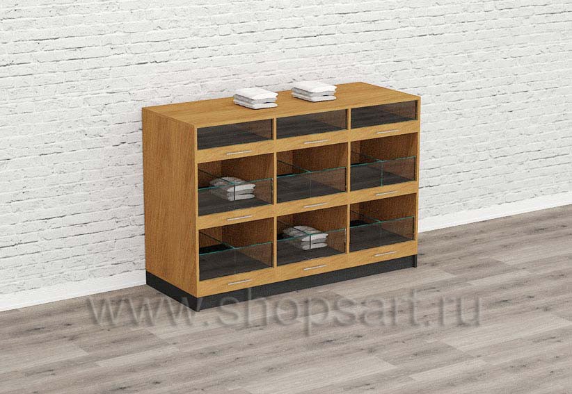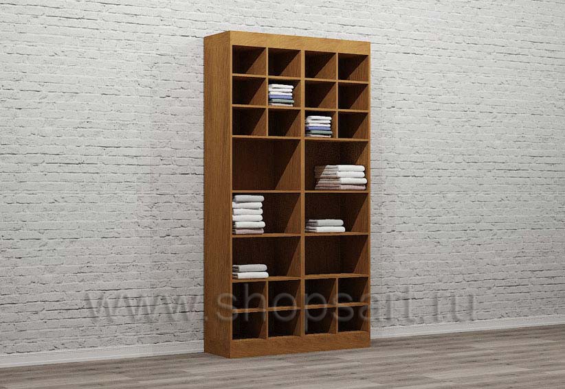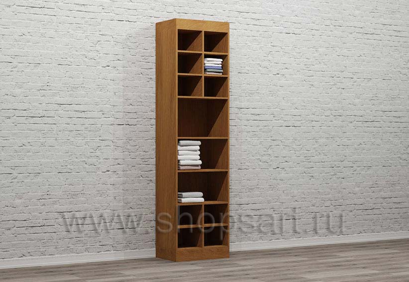 Шкаф в виде открытого стеллажа с ячейками для полотенец, салфеток и простыней. Изготавливается из ЛДСП.