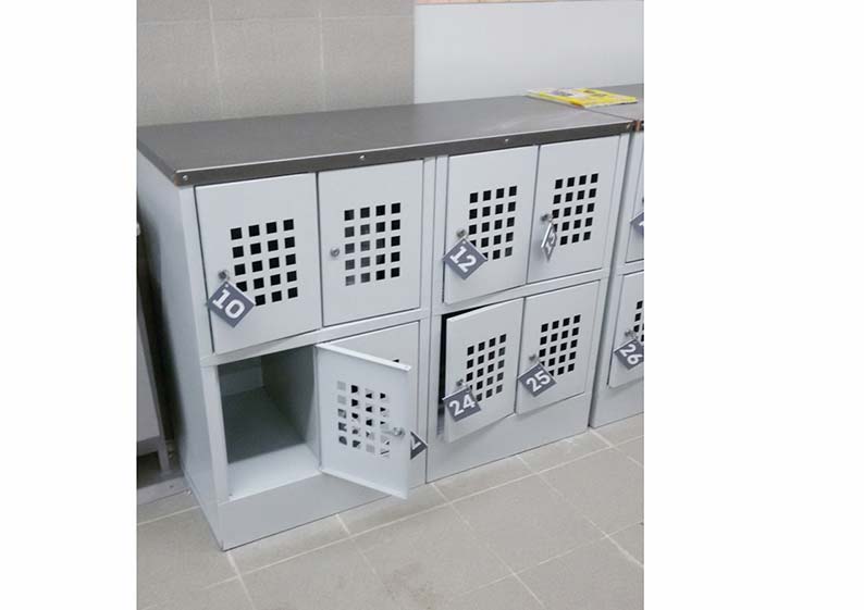 Использование таких конструкций уместно не только в целях сохранности товара в магазине. Удобно применение металлических шкафов для хранения сумок посетителей в различных спортивных клубах и в офисах (сохранности личных вещей персонала).