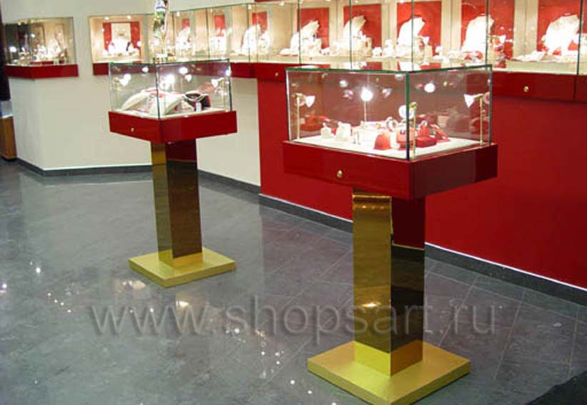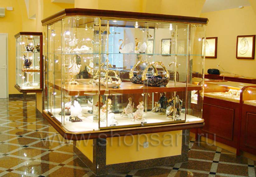 В каждом магазине присутствует оборудование из стекла. В ювелирных — мы делаем стеклянные колпаки и витрины. Колпаки склеиваются специальным клеем с использованием технологии УФ склейки. В магазинах обуви чаще используются стеклянные полки, которые пропускают свет, делая интерьер более легким. В магазин сувенирной продукции или подарков устанавливаются стеклянные витрины закрытого типа с распашными или раздвижными дверками. Стеклянные дверки позволяют защитить товар от падения или воровства, но в то же время позволяют рассмотреть его благодаря своей прозрачности.