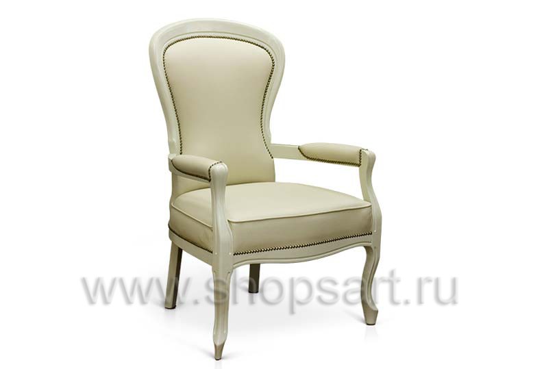 Классическое кресло цветом “Слоновая кость” с обтяжкой кожзамом.