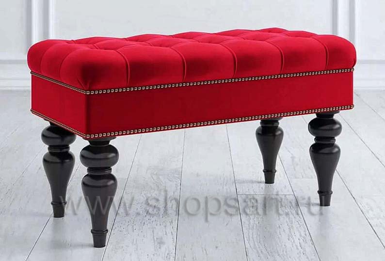 Банкетка “Сарагоза” c обивкой красного цвета. Каретная стяжка.