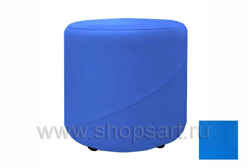 Пуфик цилиндрической формы, синего цвета.