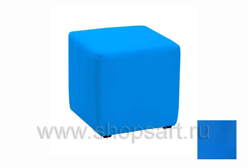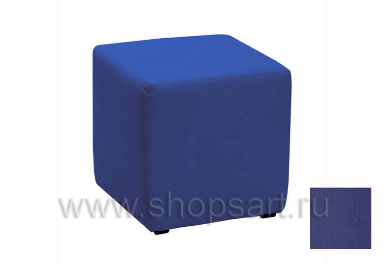 Пуфик кубической формы, синего цвета.