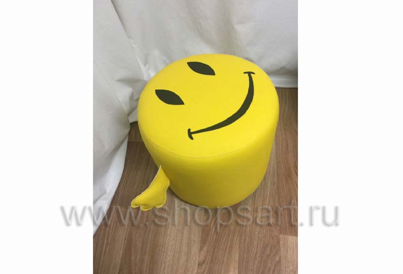 Пуфик “Смайлик”, цилиндрической формы, желтого цвета.