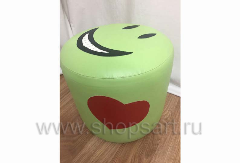 Пуфик “Смайлик”, цилиндрической формы, зеленого цвета с сердечком.