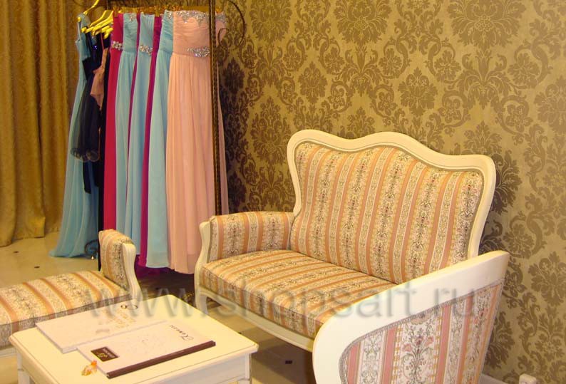 Дизайн интерьера в магазинах с пуфиками банкетками диванами