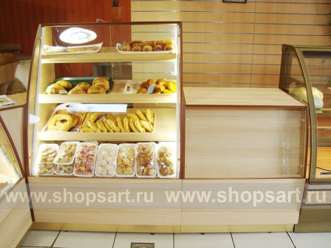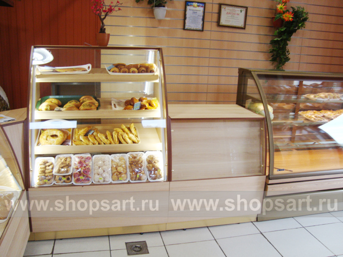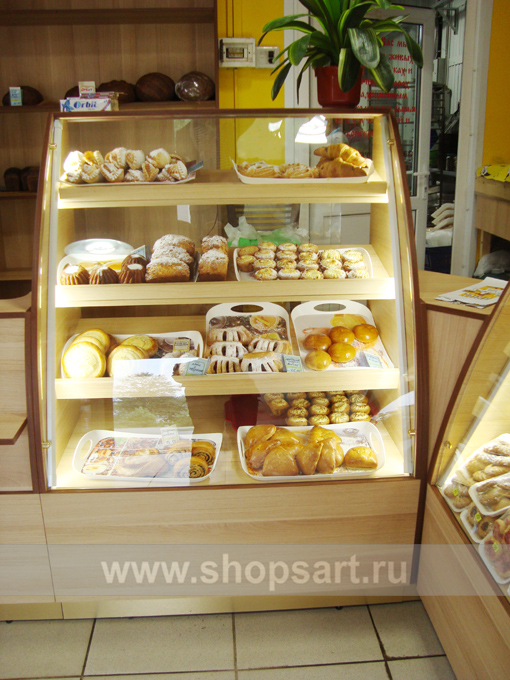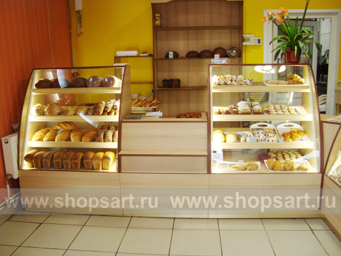 На этой странице Вы можете ознакомиться с фотографиями торгового оборудования в открытом магазине хлеба и кондитерских изделий, находящемся в Московской области. Произвела, поставила и установила в магазине торговую мебель: торговые стеллажи, торговые прилавки, торговые острова, торговые стойки, пристенные стеллажи, торговые шкафы и др. компания ООО «Искусство интерьеров»