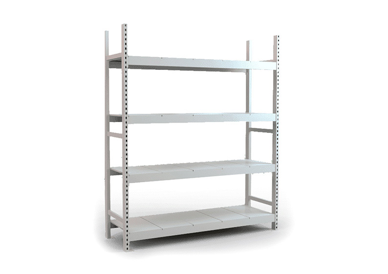 Стеллаж металлический складской, высотой 200см., с четырьмя полками. Складские стеллажи предназначены для складских помещений в магазинах продовольственных и непродовольственных товаров. За счет открытой конструкции стеллажей, они обеспечивают удобный доступ к размещенным на полке товарам. Складские грузовые стеллажи изготавливаются из профильных труб, сваренных в жесткую раму. На раме устанавливаются траверсы – продольные штанги под полку, обеспечивающие надежность установки полок. В сравнении с обычными модульными стеллажами, балочные стеллажи обладают большей надежностью. Сечение профильной трубы для изготовления стеллажей, зависит от предполагаемой нагрузки: возможны варианты 40х40мм и 40х80мм.