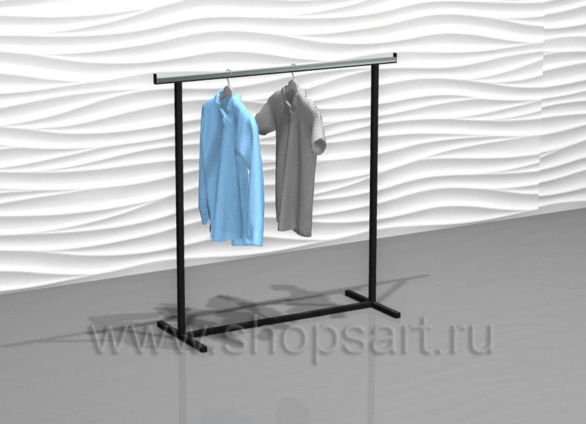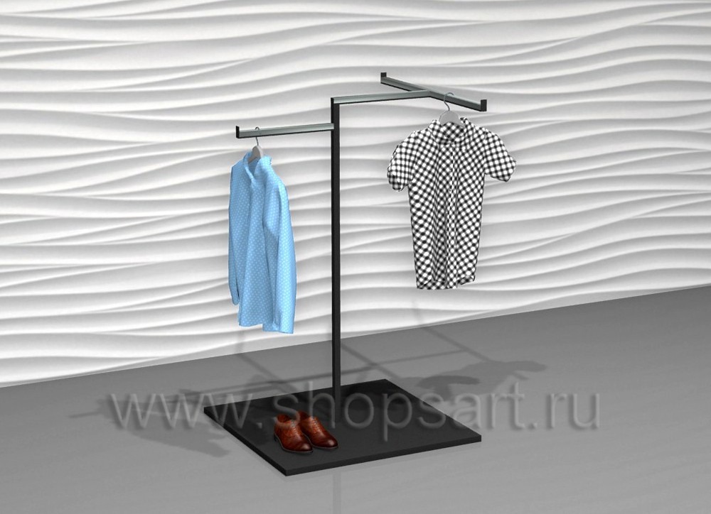 Торговое вешало используется для вывески одежды. Данное вешало, благодаря своим компактным размерам, удобно размещать в торговом зале. Это вешало, простой и удобной формы, разработано для хорошего обзора товара и легкого доступа к нему покупателям. Островное вешало имеет в своей основе металлическую сварную квадратную трубу 25х25мм. с покрытием порошковой краской чёрного, матового цвета.Подробнее