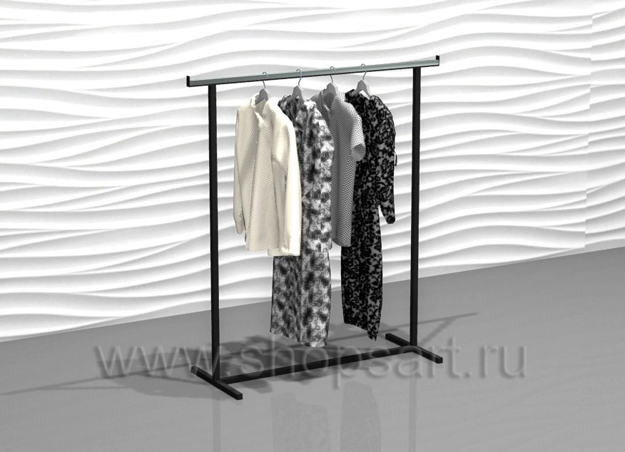 Конструкция стеллажей, содержащая опоры, требуют минимального крепления к стене, подходит к помещениям с тонкими стенами, не позволяющими выдержать большой вес вывешенных пальто, зимних курток и другой одежды. Для предотвращения повреждений в процессе эксплуатации изделия сверху, в зоне вывески товара, на окрашенную поверхность трубы монтируется защитная накладка из нержавеющей стали.